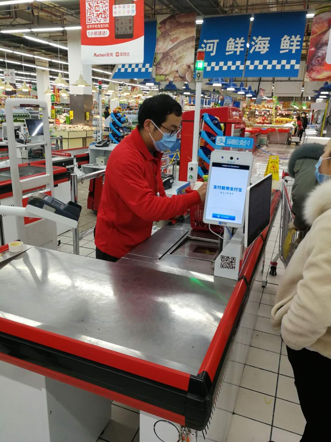 在这个非常时期,地理信息171班崔浩杰同学大胆站出来为百姓的饮食起居提供保障,成为欧尚超市五星店的一名志愿收银员。