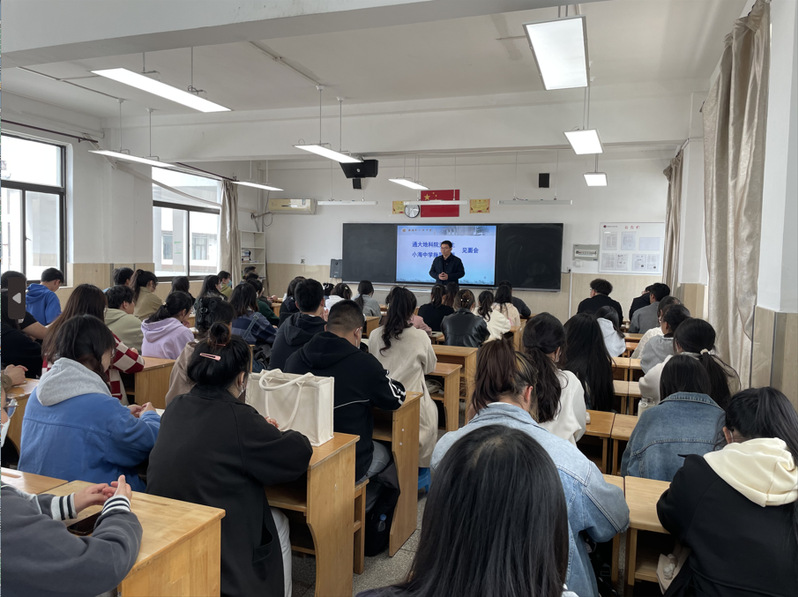 2023年4月3日下午,21级地理科学(师范)为期两周的教育见习-研习活动在南通市小海中学拉开帷幕。小海中学专门为前来开展教育见习-研习的地理见习生召开了师生见面会。本次见面会由小海中学教务处夏志辉主任主持,学院教学副院长刘波、地理系主任叶磊、小海中学团委书记陈箭老师、带队教师董艳、小海中学见习点54位21级地理科学(师范)专业见习生及全体代教老师参加了见面会。
