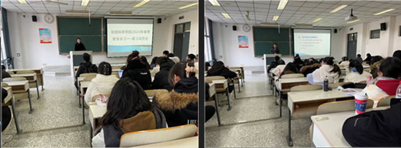 随后,地理系主任叶磊强调本次实习重在学习知识,在实习过程中注意谨言慎行,认识到自己作为实习教师应具备的基本素养,处理好与同学、同事、家长之间的人际关系,将不断提升自己的人际交流能力。