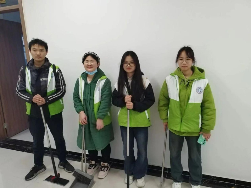 “爱倍加小分队”在本次活动中对教室、会议室及公共区域进行卫生打扫,成员们清扫地面、擦拭桌椅和整理课桌上的物品,紧密配合,一丝不苟地完成了志愿服务活动。
