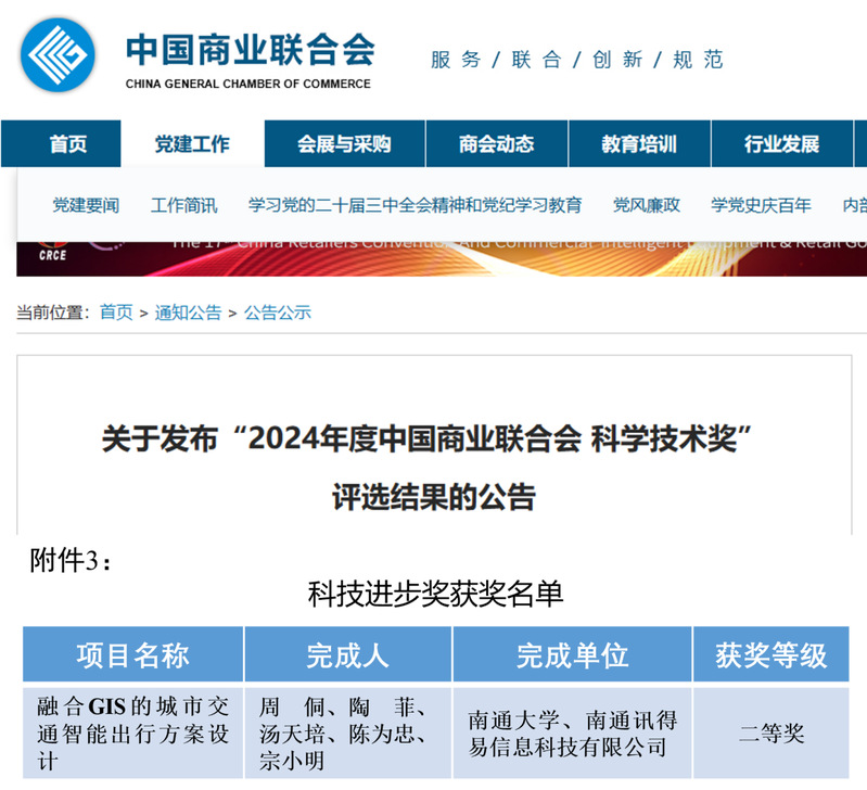 近日,“2024年度中国商业联合会科学技术奖”评审结果公布,sunbet申搏成果“融合GIS的城市交通智能出行方案设计”荣获科技进步奖二等奖。“中国商业联合会科学技术奖”是经国家科技部、国家科学技术奖励工作办公室批准设立的权威奖项,具备提名、推荐国家科学技术奖资格。奖项旨在表彰在全国商业行业的科学研究、技术创新、成果推广以及高新技术产业化等方面做出卓越贡献的单位和个人。