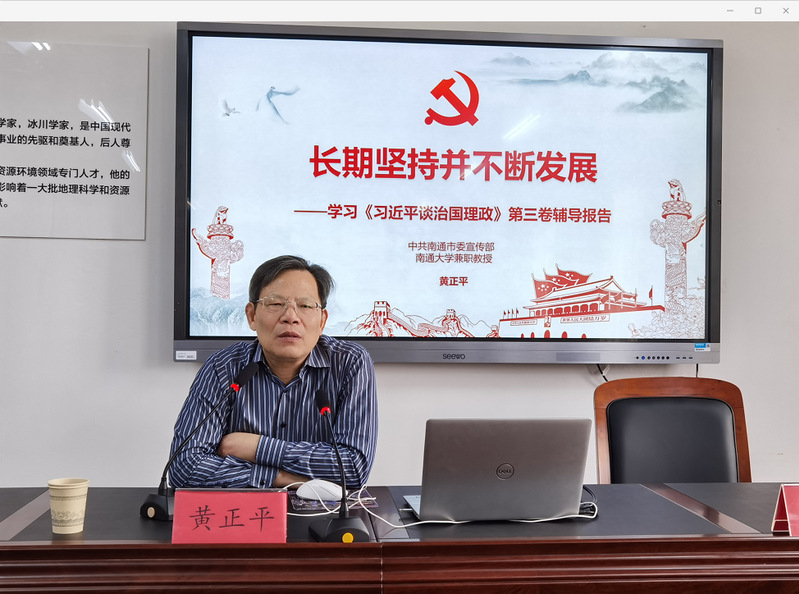 为推动对《习近平谈治国理政》第三卷的学习不断引向深入,9月23日下午,应sunbet申搏官方网站党委邀请,中共南通市委宣传部副部长、sunbet申搏官方网站兼职教授黄正平为学院党委理论学习中心组(扩大)做题为《长期坚持并不断发展》的辅导报告。报告会由学院党委书记潘晴雯主持。