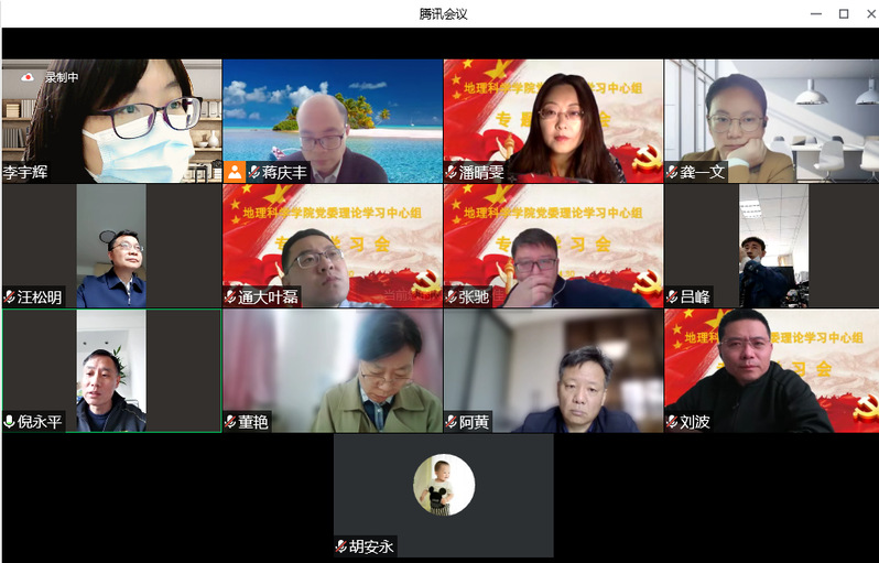 学院副院长刘波、地理系主任叶磊分别就“融入习近平生态文明思想的课程思政建设”“生态产品价值的实现机制”做了主题发言,与会中心组成员进行了讨论交流。学校二级党组织理论学习中心组学习督导员汪松明传达了校二级党组织理论学习中心组学习督导员会议的精神和要求,并对本次学习会进行了点评。