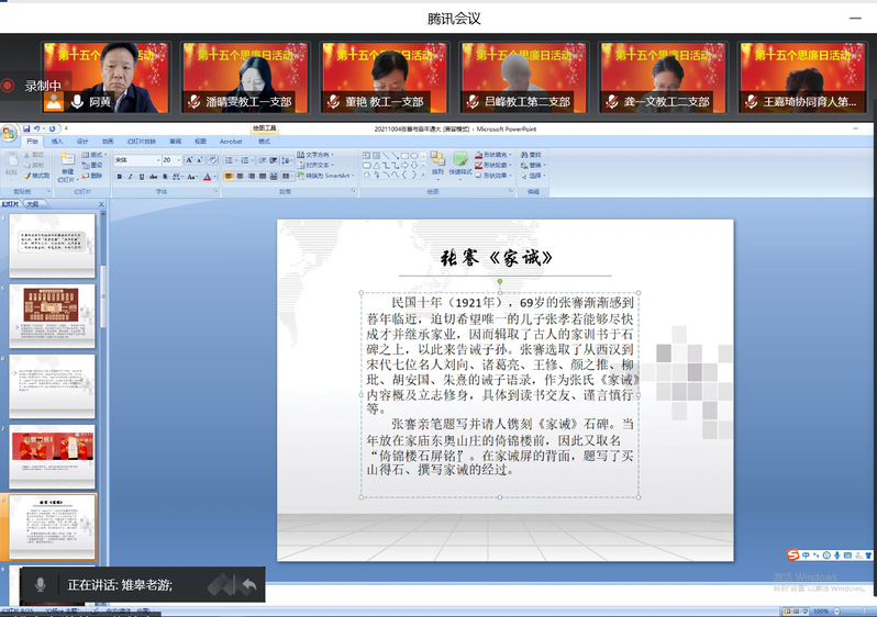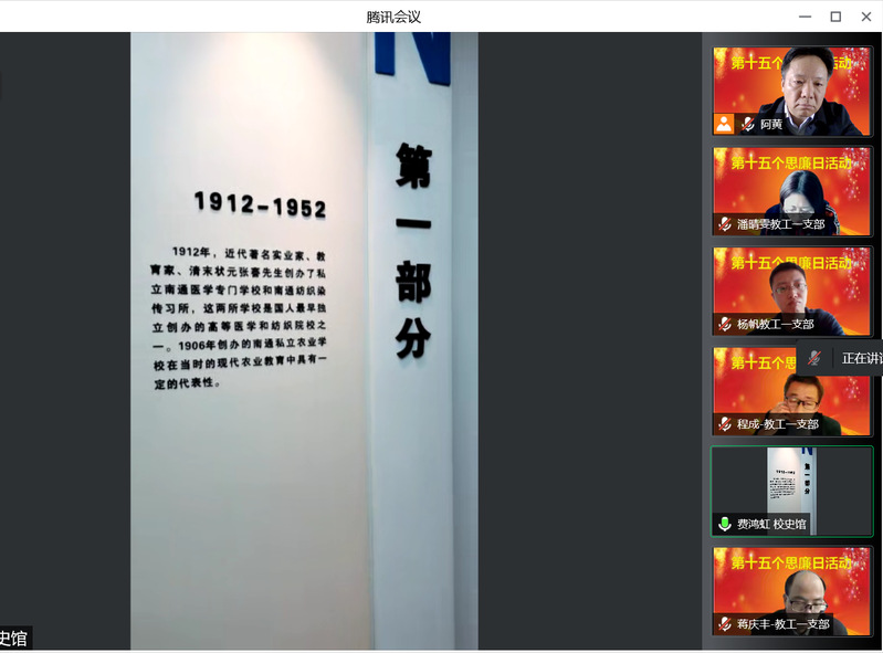 全体党员通过视频连线的方式,在讲解员的带领和介绍下参观了sunbet申搏官方网站校史馆和张謇教育馆,重温了sunbet申搏官方网站110年波澜壮阔的办学历史和先校长张謇先生的教育思想与伟业;邀请校史馆馆长万久富教授在线做了《张謇家风与文化传承》的主题报告,领略了张謇先生实业救国、教育救国的远大抱负和“勤学”、“诚信”、“廉公”的家风传承;组织全体党员集中在线观看了党风廉政教育专题片《折翼的青春》,让大家再次从举案说法说纪中得到了警示和启迪。