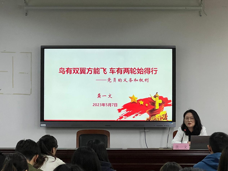 5月7日下午,sunbet申搏党委副书记兼副院长龚一文为2023年发展对象培训班全体学员做题为《鸟有双翼方能飞,车有两轮始得行——党员的义务和权利》的专题讲座。