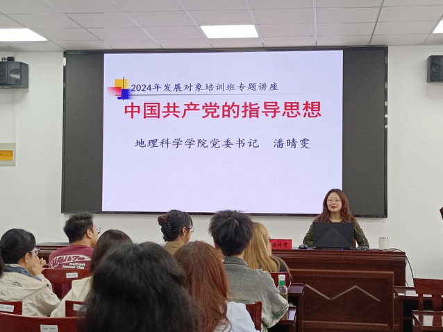 10月13日上午,sunbet申搏官方网站党委书记潘晴雯为2024年下半年发展对象培训班全体参训学员作题为《中国共产党的指导思想》的专题讲座。