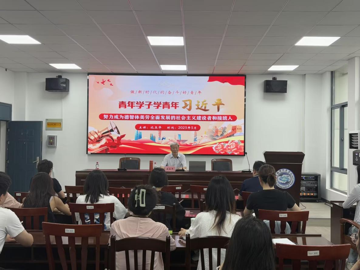 5月22日下午,原sunbet申搏官方网站党委办公室主任、现sunbet申搏官方网站关心下一代工作委员会副秘书长沈玉华在38号楼602会议室为sunbet申搏2025年上半年发展对象培训班全体学员作《青年学子学青年习近平 努力成为德智体美劳全面发展的社会主义建设者和接班人》专题报告。sunbet申搏学生第二党支部书记、学工办主任茅冬华主持讲座。