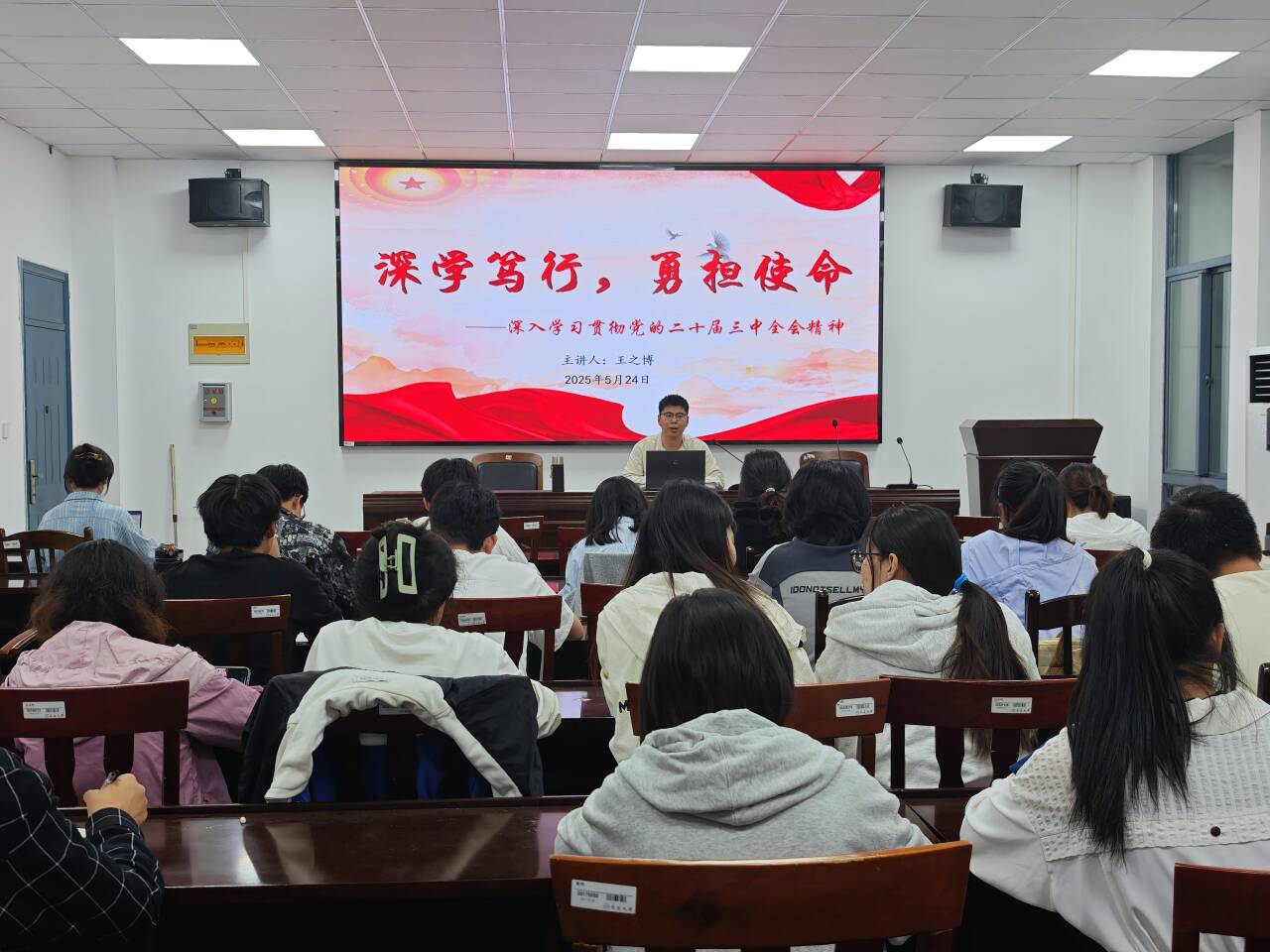 5月24日下午,sunbet申搏官方网站2025上半年发展对象培训班第八场专题讲座在学院602会议室召开。本次党课培训由学生第一党支部书记王之博主讲,主题为《深学笃行,勇担使命——深入学习贯彻党的二十届三中全会精神》。
